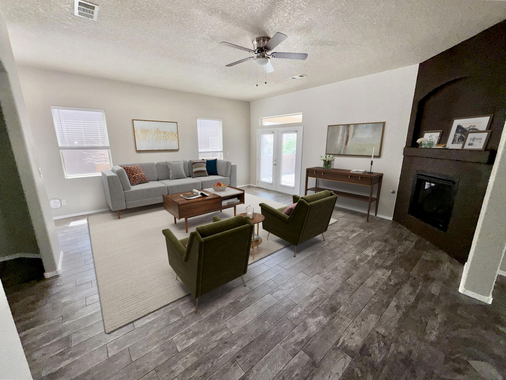 Located in Montecito Estates, this 3-bedroom, 2-bath home offers space, comfort, & flexibility with an open layout, 9-foot ceilings, and generously sized bedrooms. A versatile flex room provides the option for a home office, hobby space, or potential fourth bedroom. The living room features a fireplace that adds warmth and character, while the kitchen offers ample cabinet storage, a functional layout, and plenty of workspace for everyday living or entertaining. Step outside to a covered patio ideal for relaxing or gatherings, and enjoy the added convenience of an attached 3-car garage. Residents have access to community amenities including a pool, clubhouse, parks, play areas, and walking paths. Schedule your showing today. Some photos have been virtually staged!